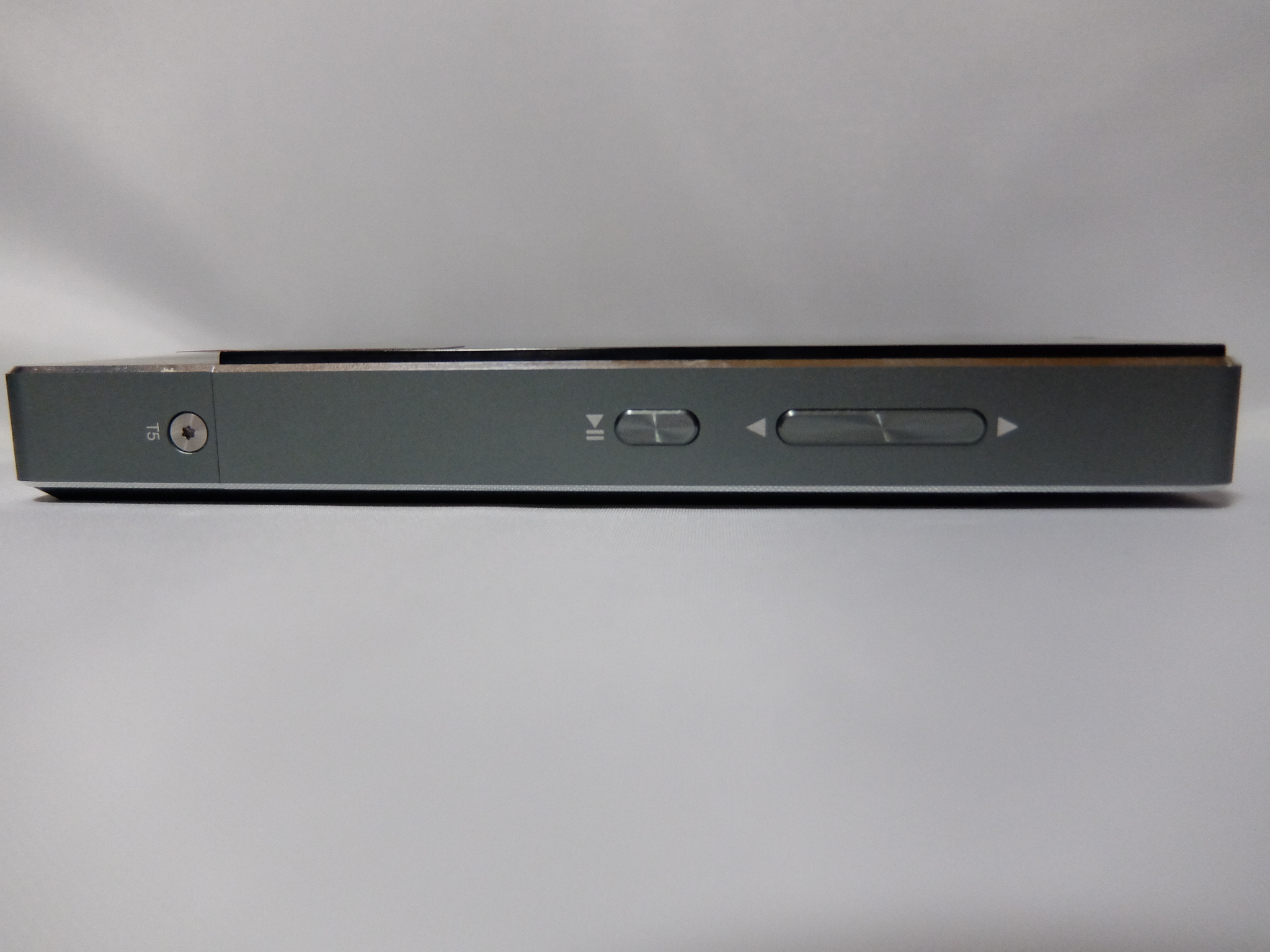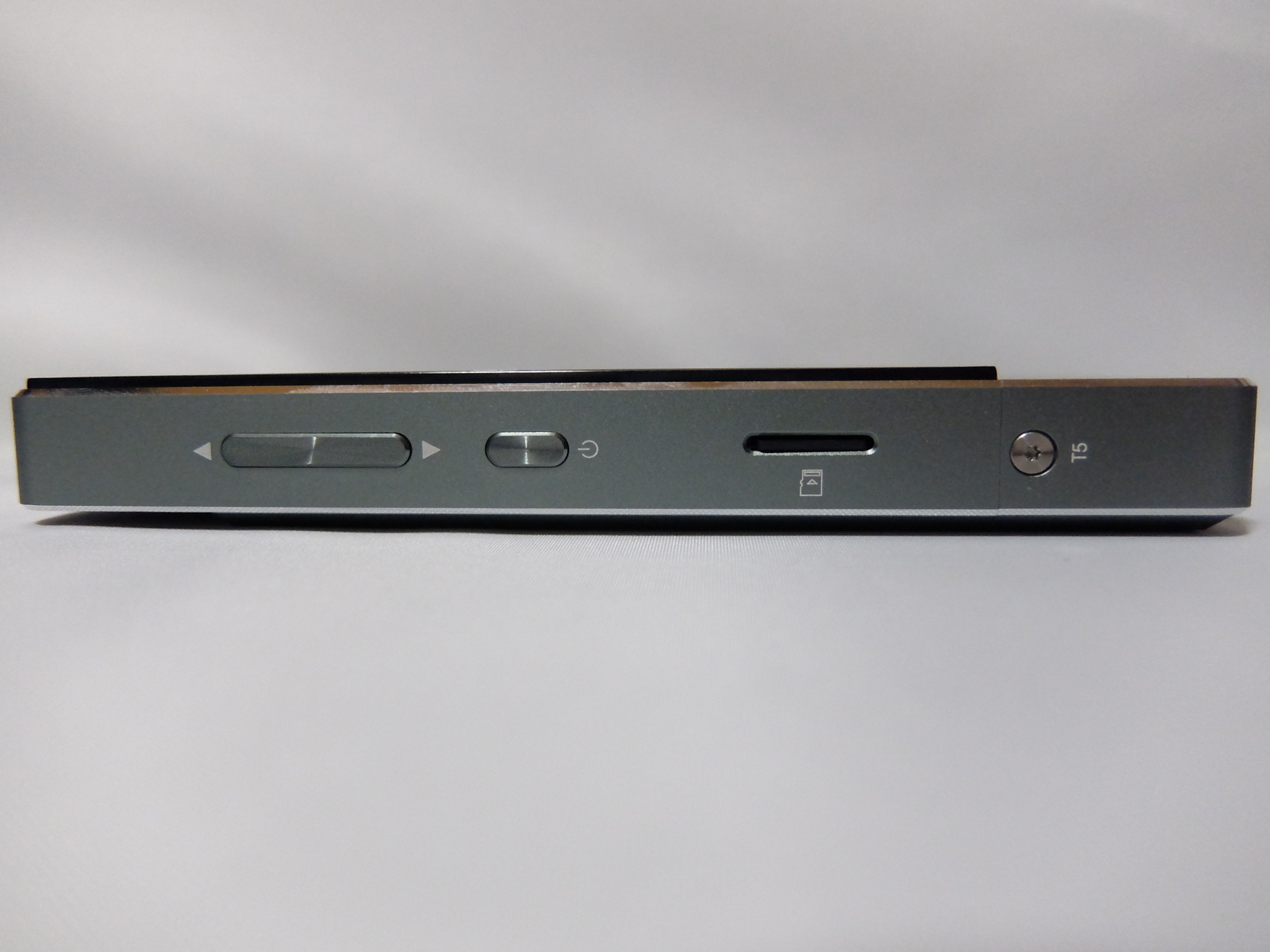 物理キーは本体両側面にあり、左側面に音量ボタン・電源ボタン、右側面に曲送り/戻しボタン・再生/一時停止ボタンが配置されています。音量ボタンの長押しで曲送り/戻しを行うDAPが多いですが、これは操作ミスで不意に音量が上がってしまう事故が稀にあり、それぞれボタンを独立させたのは個人的に高評価です。