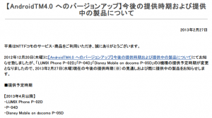 これらの機種へのアップデートで現在ドコモが予定していたAndroid 4.0へのアップデート提供はすべて完了となった。