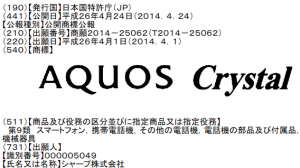 AQUOSといえば4月1日に「AQUOS Crystal」という商標が出願されています。この名称の製品は現時点で発表されていません。