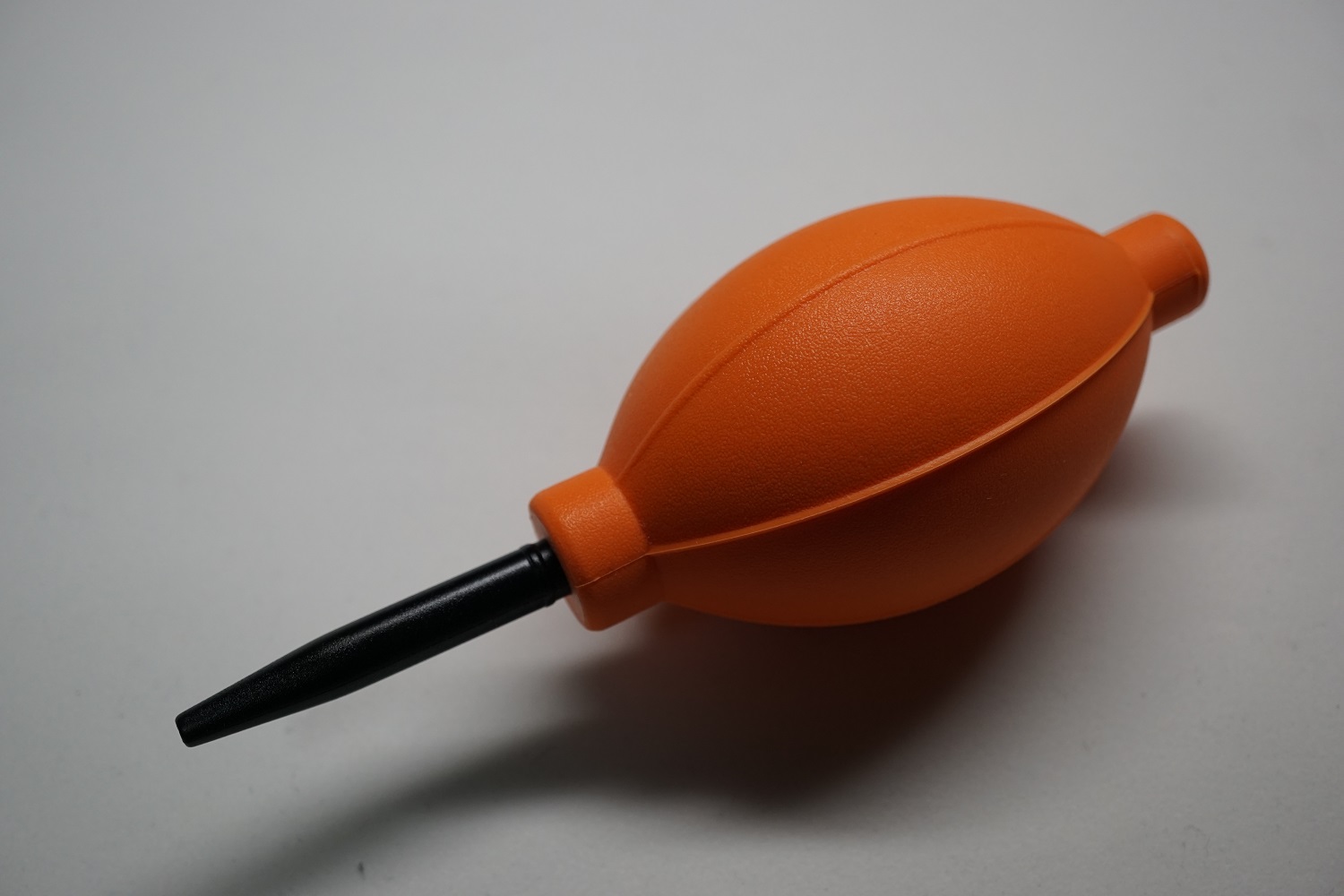 ブロワーで全体やレンズ部分のホコリや細かい割れたガラスなどを吹き飛ばし、元々の両面テープがあった部分を拭き取り綺麗して、新しいパネルを貼る準備をします。